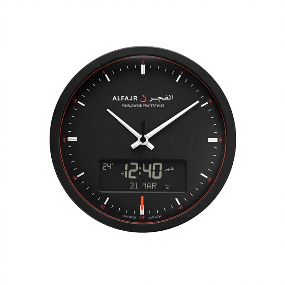 นาฬิกาปลุกอิสลามแบบประหยัดน้ำหนัก ผลิตจากโพลีคาร์บอเนต พร้อมระบบ GPS ระบุตำแหน่งอัตโนมัติ หน้าจอสัมผัส ควบคุมด้วยปุ่มเดียว