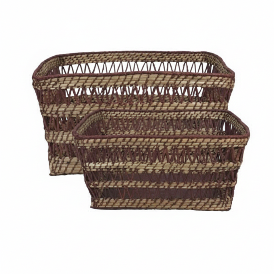 Economically Priced Eco-Friendly Vintage Handwoven Water Hyacinth Multifunction Baskets Tray Comfortable Handle for Bedroom