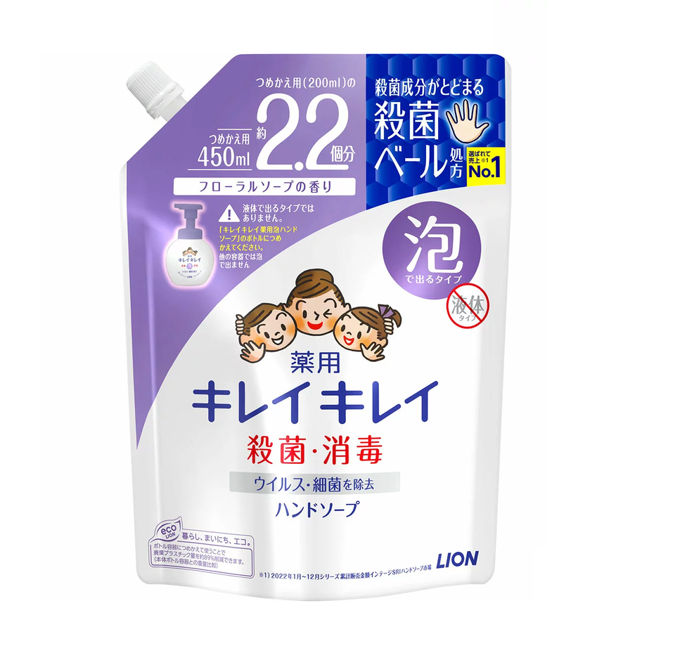 สบู่ล้างมือแบบโฟมยี่ห้อไลออน คิเร่ คิเร่ สูตรยาสมุนไพร กลิ่นดอกไม้ ขนาดเติม 450 มล. ราคาประหยัด คุณภาพสูง ขายดี