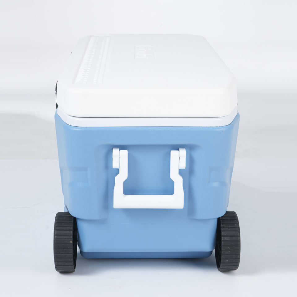 กล่องเก็บความเย็นแบบมีล้อ Ecooler ZM100A ขนาด 100 ลิตร/105 ควอร์ต ผลิตจากพลาสติก PE พร้อมแผ่นน้ำแข็งแบบใช้ซ้ำได้ เก็บความเย็นได้นาน 5 วัน เหมาะสำหรับอาหาร กิจกรรมกลางแจ้ง และกีฬา