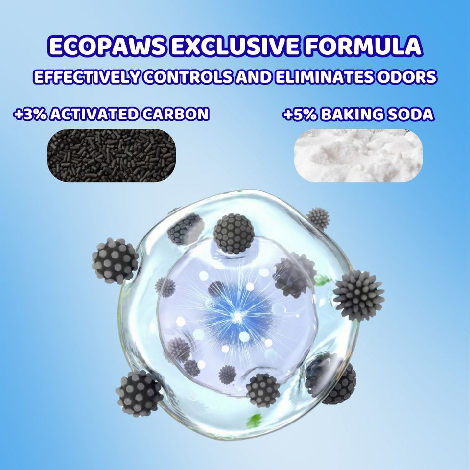 ทรายแมวเบนโทไนต์ Ecopaws ซุปเปอร์ดูดซับ จับตัวเป็นก้อนเร็ว ฝุ่นน้อย รับผลิตแบบ OEM ODM สำหรับสัตว์เลี้ยง