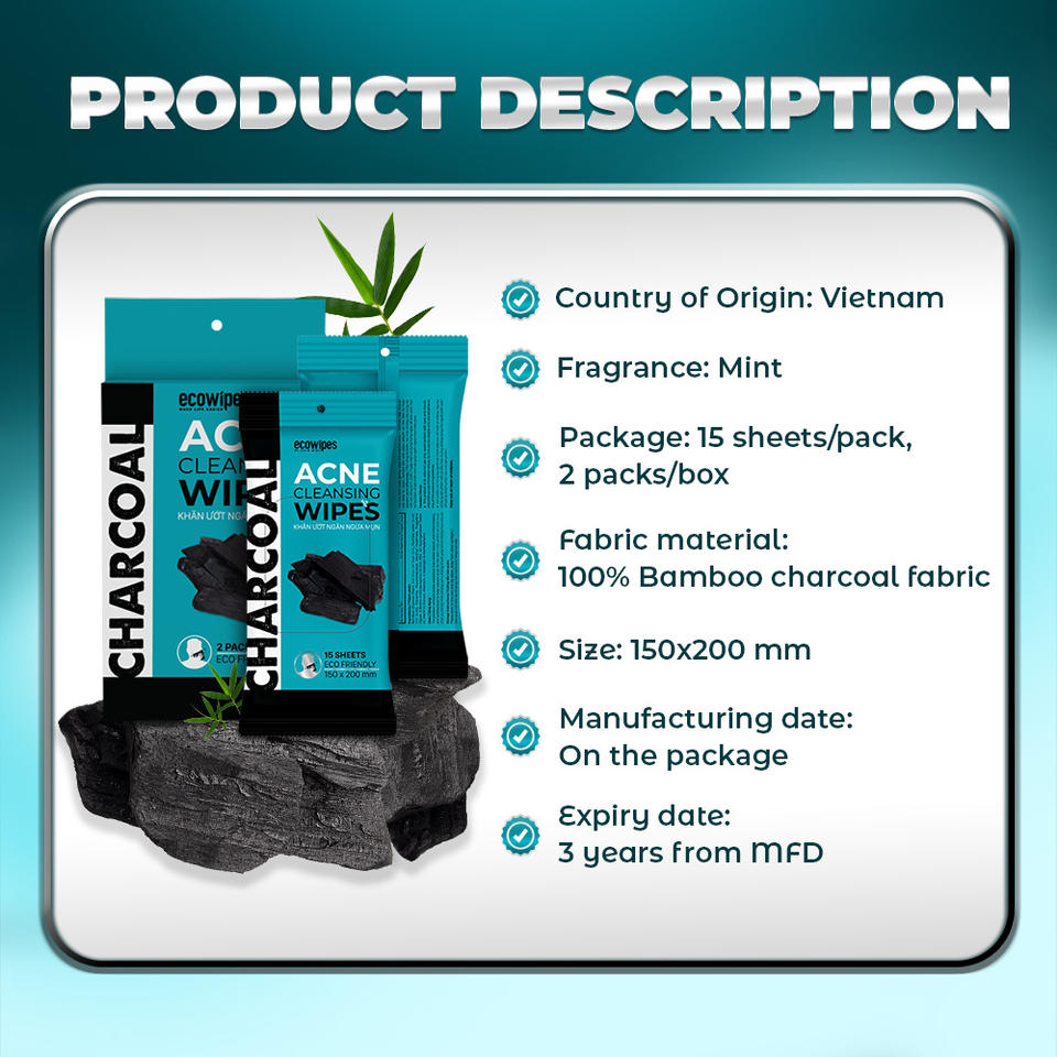 เอคอไวป์ส ผ้าเช็ดทำความสะอาดผิวสำหรับผู้หญิง สูตรต่อต้านสิว ผลิตจากใยไผ่ 100% กลิ่นมิ้นท์ นำเข้าจากเวียดนาม สำหรับผู้ใหญ่