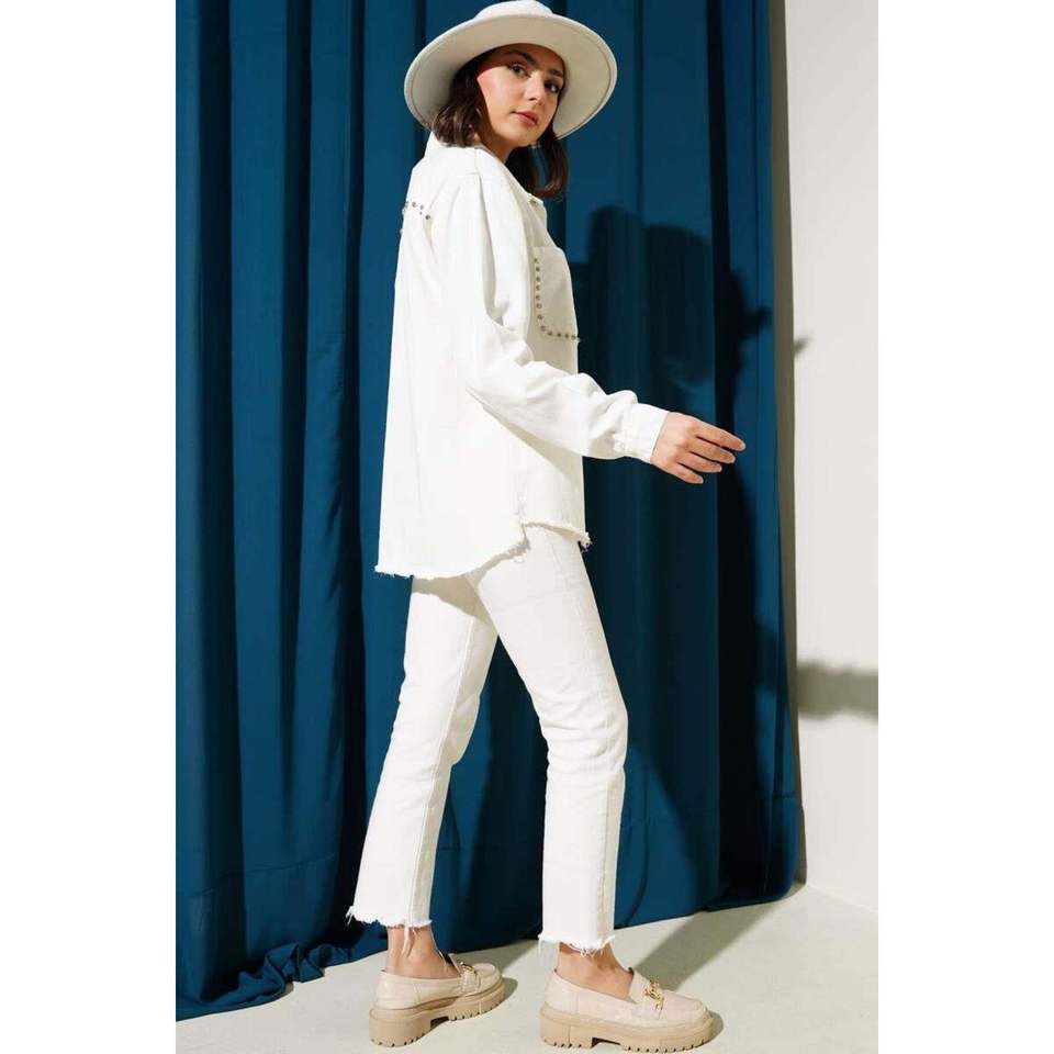 แจ็คเก็ตแกเบพาร์ดีนสีเขียวพร้อมกระเป๋าหินเครื่องประดับแฟชั่นสำหรับผู้หญิง