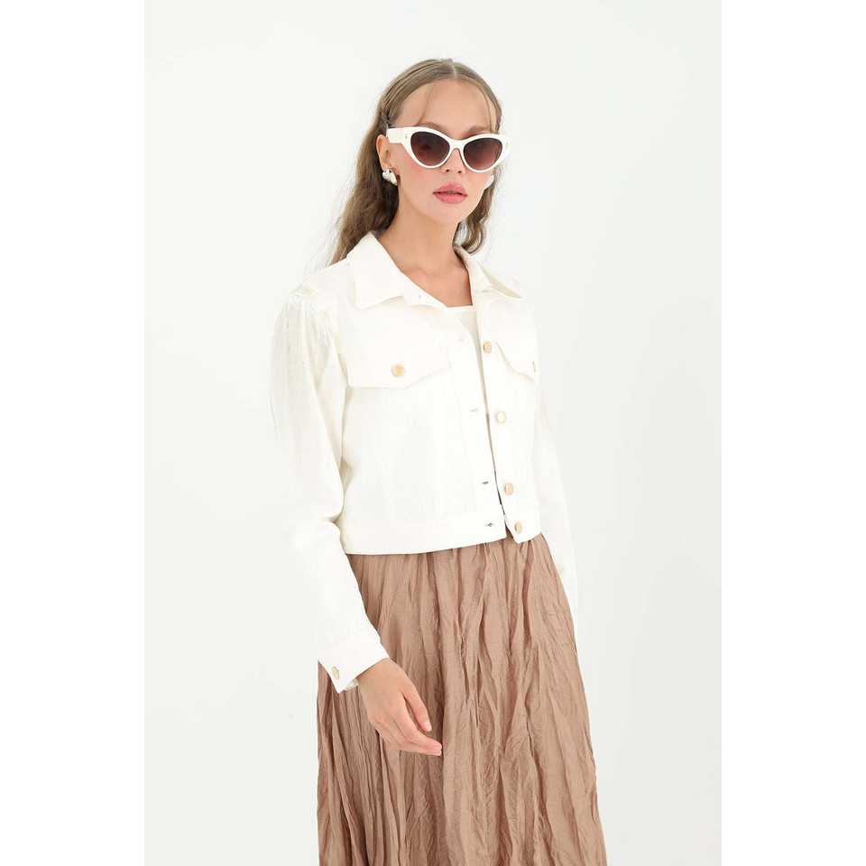 Ecrugold แจ็คเก็ตอเนกประสงค์สำหรับผู้หญิง, เสื้อแจ็คเก็ตแบบเต็มแขนผ้าทอฤดูใบไม้ผลิสไตล์ S L