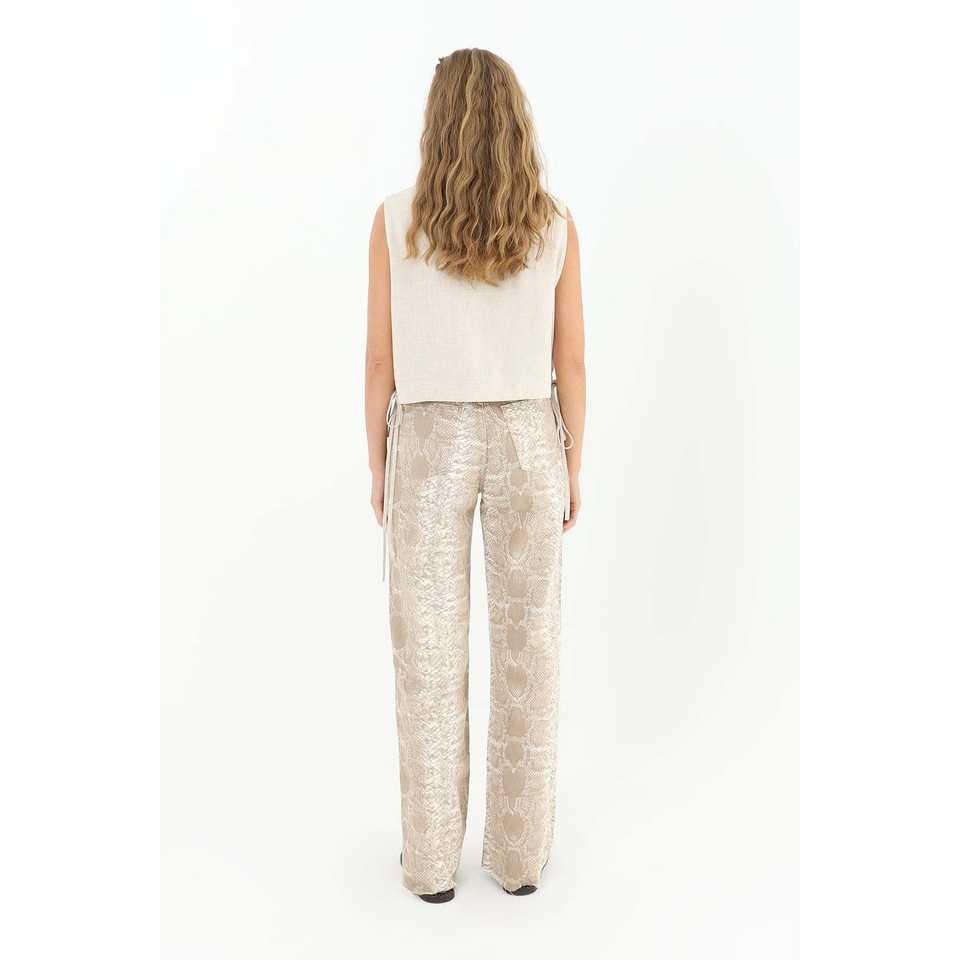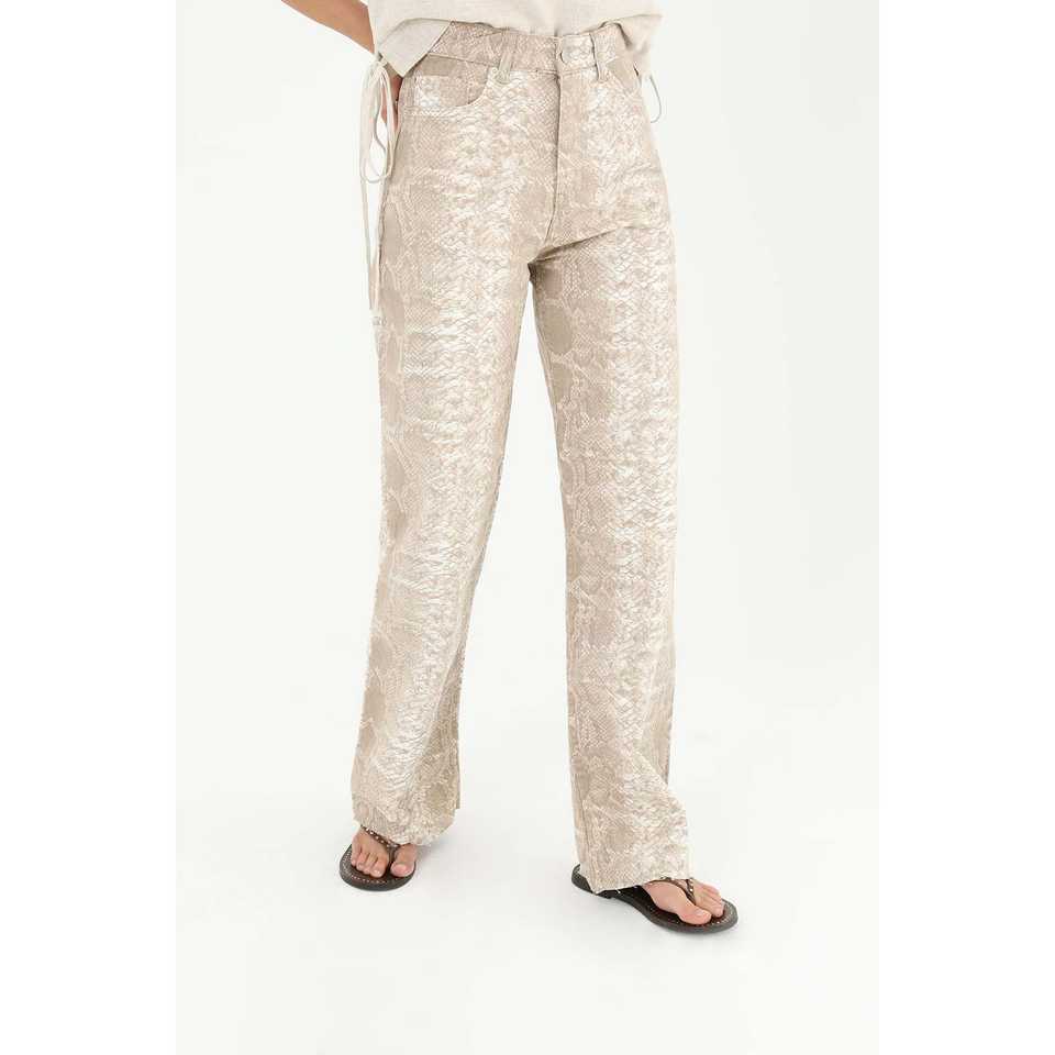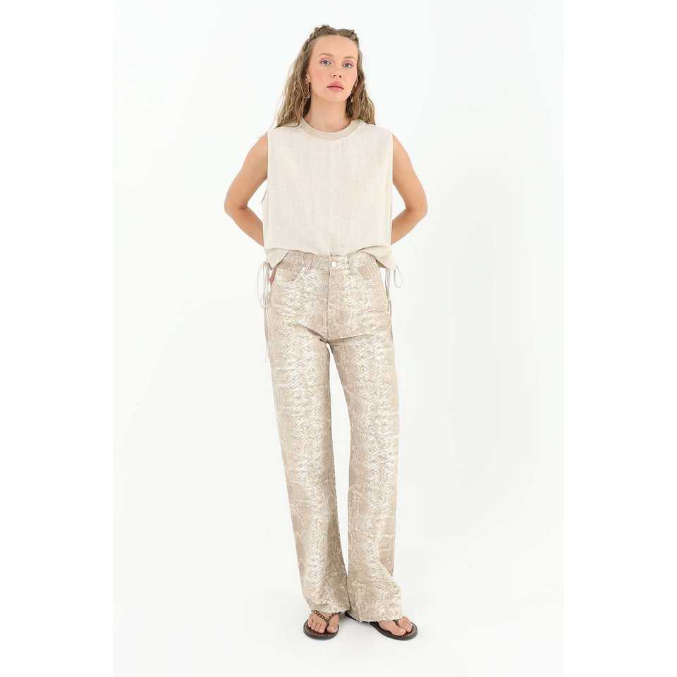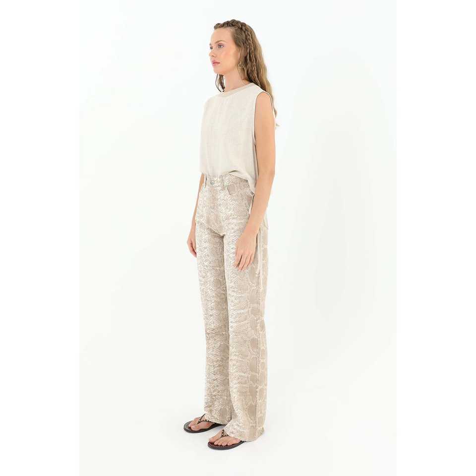 Ecrum กางเกงเอวสูงผ้าลูกฟูกเอวสูงของผู้หญิงกางเกงลำลองดีไซน์มีลวดลาย