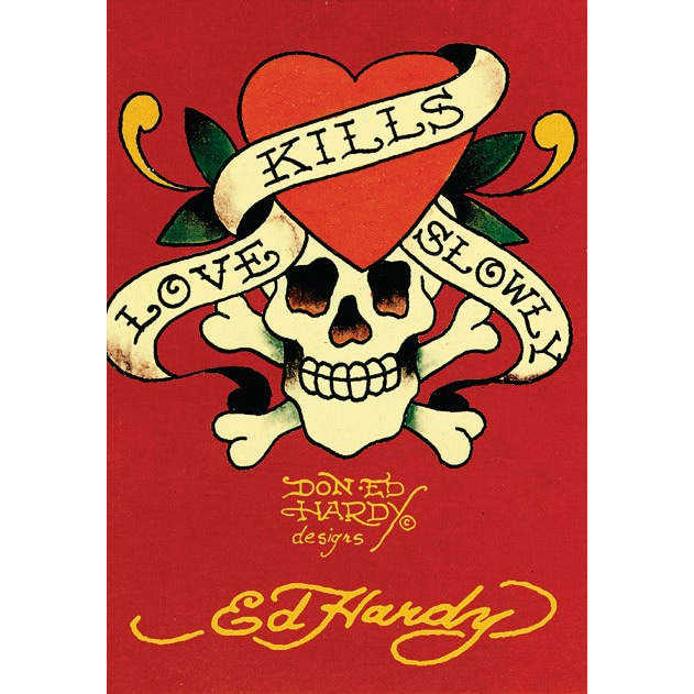 Ed Hardy Collectible Card Postcard Featuring the Mysterious Design 'Love Kills Slowly'
