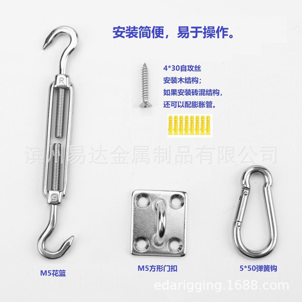 ชุดอุปกรณ์กันแดดสแตนเลส Eda รุ่น M5 พร้อมตัวล็อคประตูแบบสี่เหลี่ยม ชุด 32 ชิ้น อุปกรณ์เสริมสำหรับผ้าใบกันแดดกลางแจ้ง