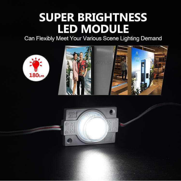 โมดูลไฟ LED แบบ Edgelit อลูมิเนียม PCB 2W DC12V พร้อมเลนส์ ABS ฉีดขึ้นรูป สำหรับป้ายไฟกล่องไฟ