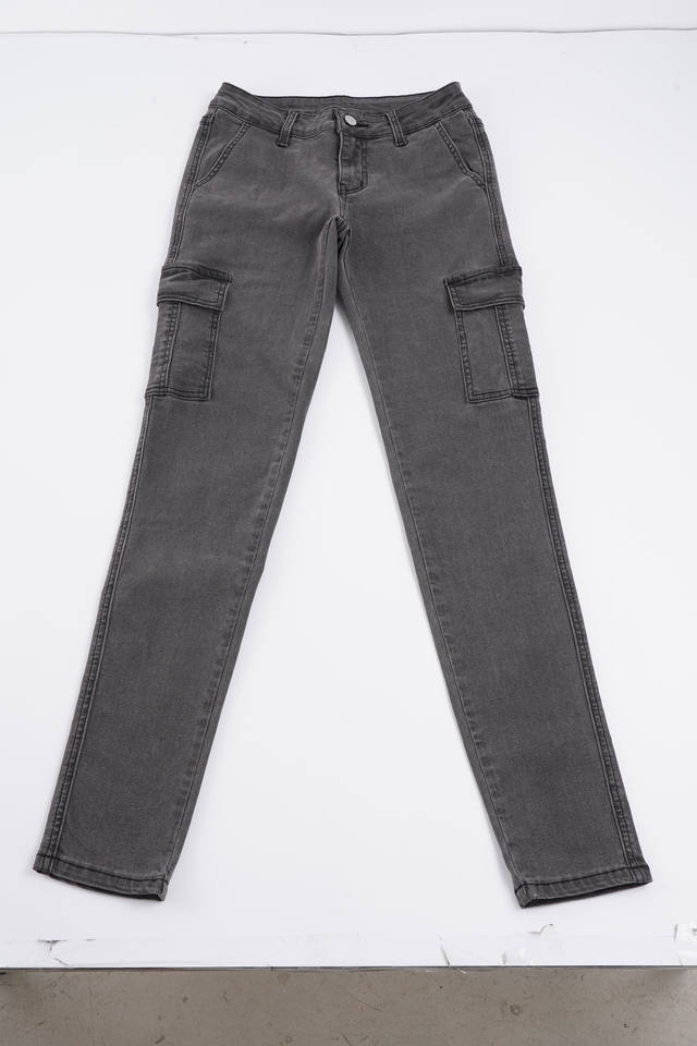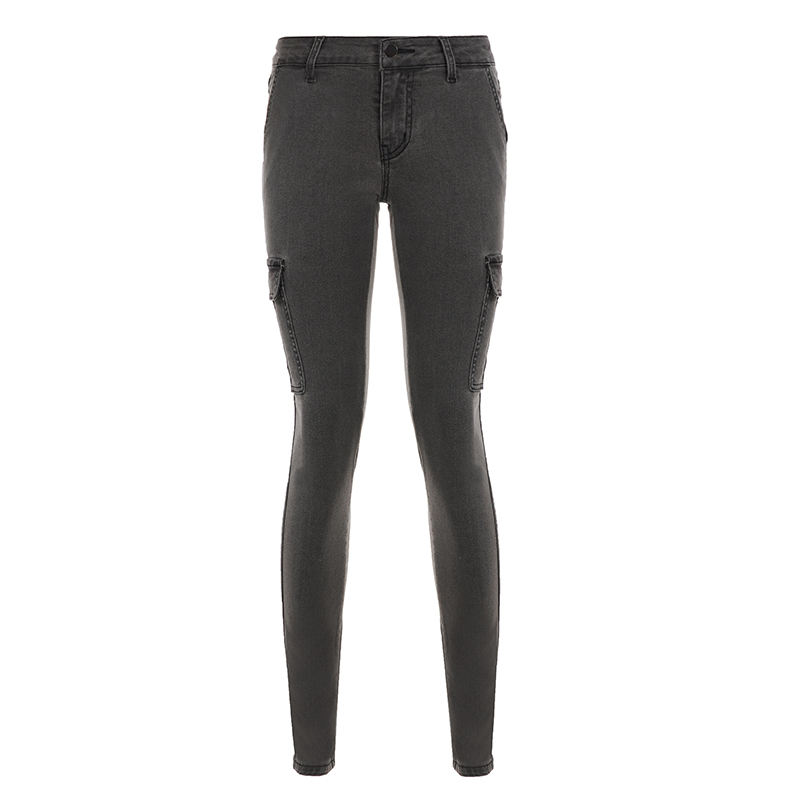 กางเกงยีนส์เดนิมทรงสกินนี่เอวต่ำสไตล์สตรีทแวร์สุดเท่ พร้อมกระเป๋าคาร์โก้ กันน้ำ ทรงวินเทจเข้ารูปทรงเทเปอร์