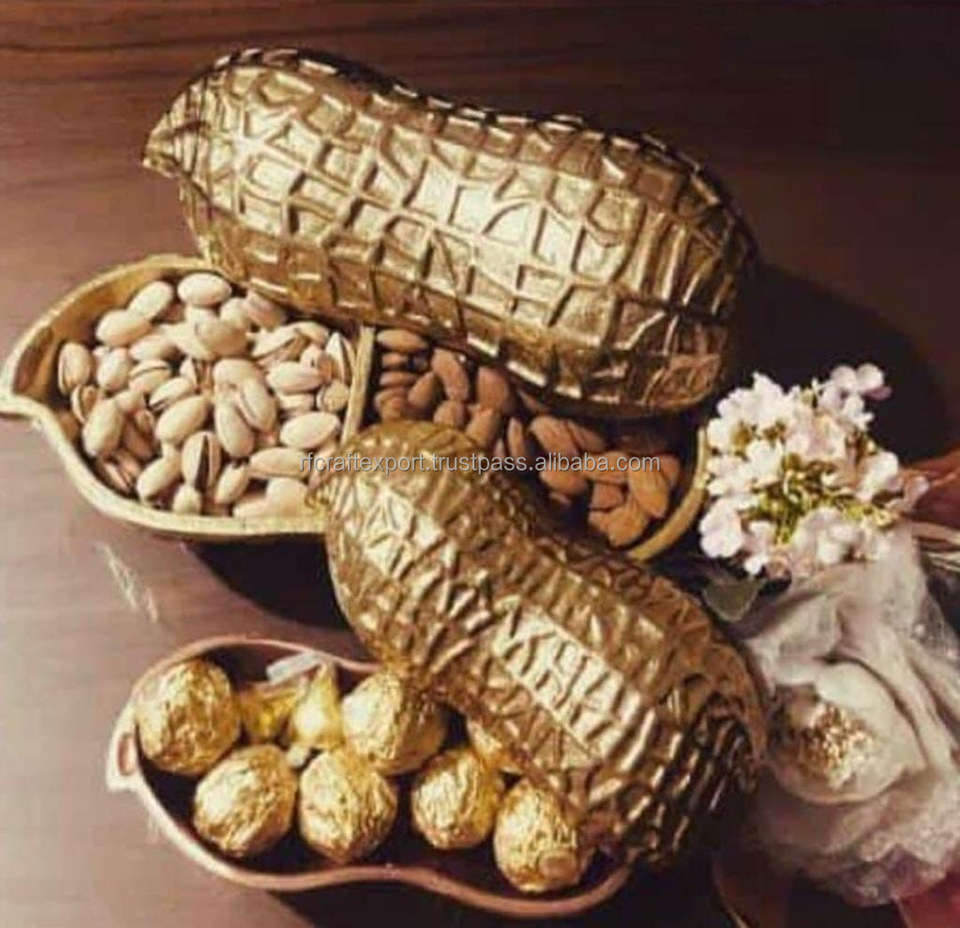 กล่องใส่ถั่วลิสงอะลูมิเนียมสีทองแบบวินเทจที่กินได้กล่องใส่ผลไม้แห้ง