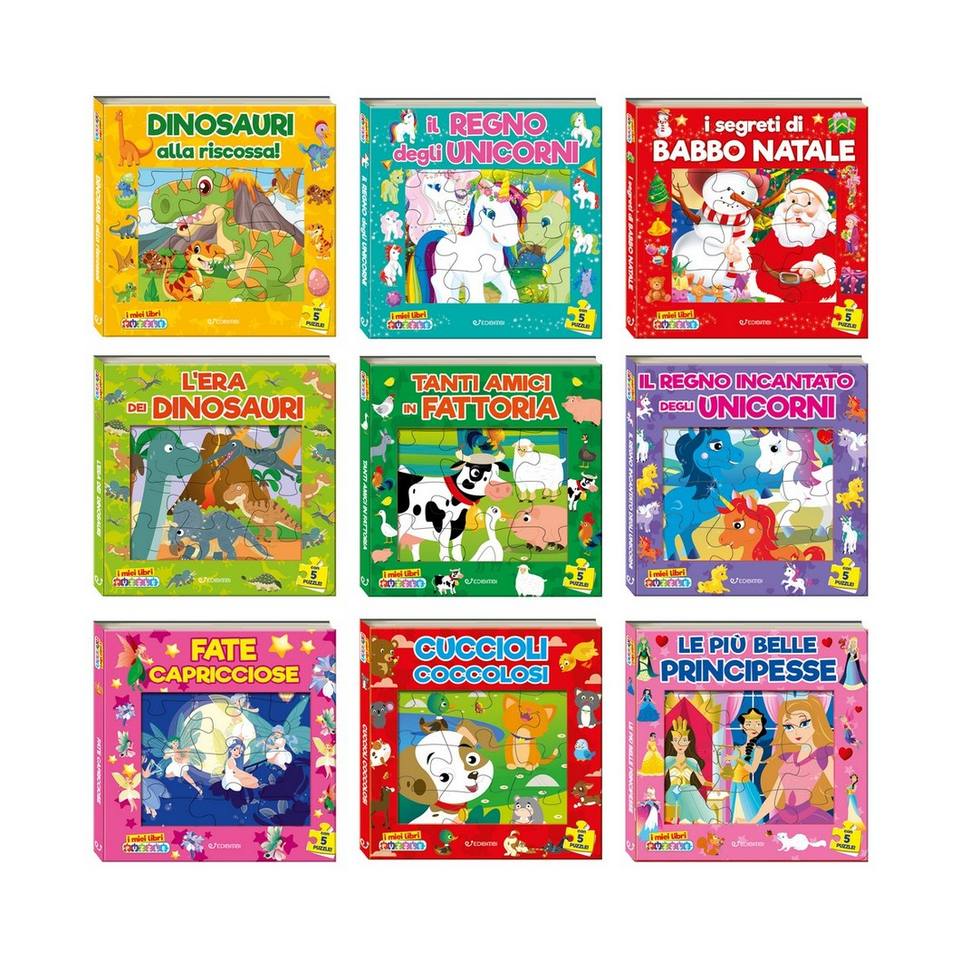 หนังสือจิ๊กซอว์แบบมีปกบุหนาพร้อมหน้าต่างสำหรับเด็กเรียนรู้เรื่องราวหลากสีสัน 16 ชิ้น 12 หน้า ผลิตในอิตาลี