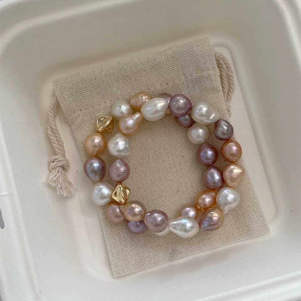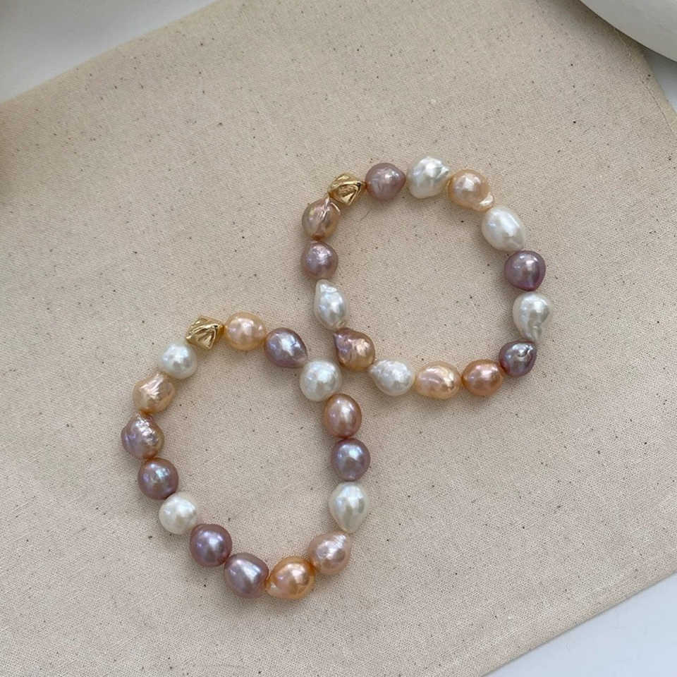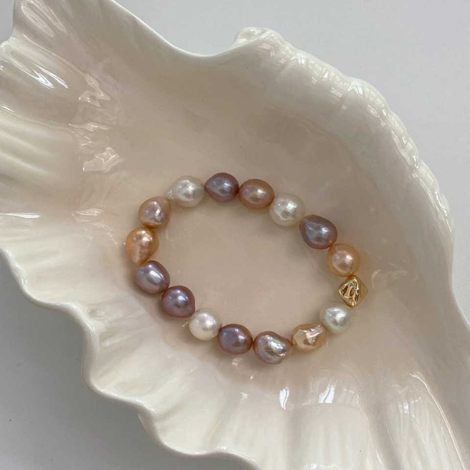 สร้อยข้อมือไข่มุกน้ำจืดธรรมชาติสไตล์บาร็อคของเอดิสัน คอลเลคชั่น Candy Drop - สร้อยข้อมือไข่มุก WENCHI แบบยืดหยุ่น ขนาด 15-16 ซม. ดีไซน์หรูหรา