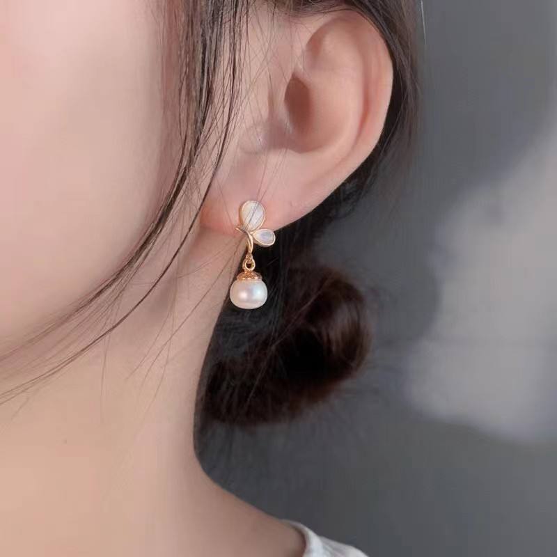 ต่างหูมุกน้ำจืดเอ็ดISON ดีไซน์ห้อยระย้า รูปผีเสื้อเปลือกหอย น่ารัก เหมาะสำหรับสาวๆ และเป็นของขวัญวันเกิดยอดนิยม เครื่องประดับแฟชั่น
