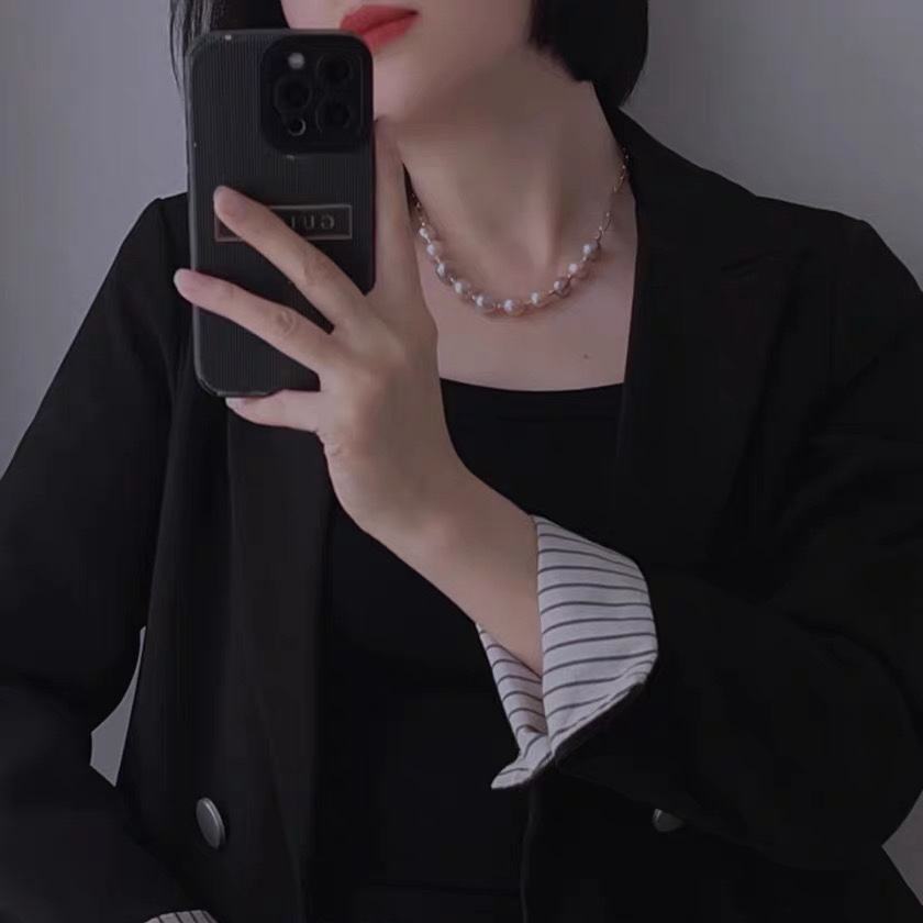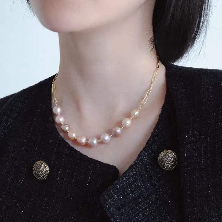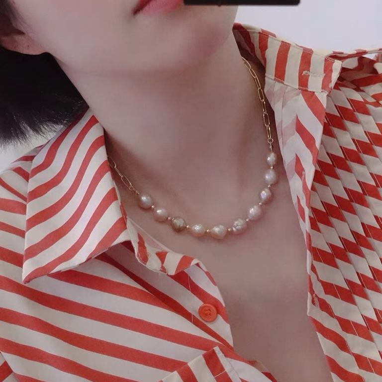 สร้อยคอมุกบาโรกทรงเอ็ดดิสันสำหรับผู้หญิง สีลูกกวาด ดีไซน์ย่น หรูหรา ไม่ซ้ำใคร
