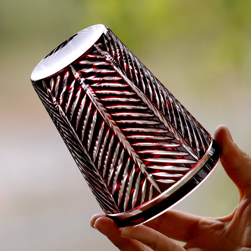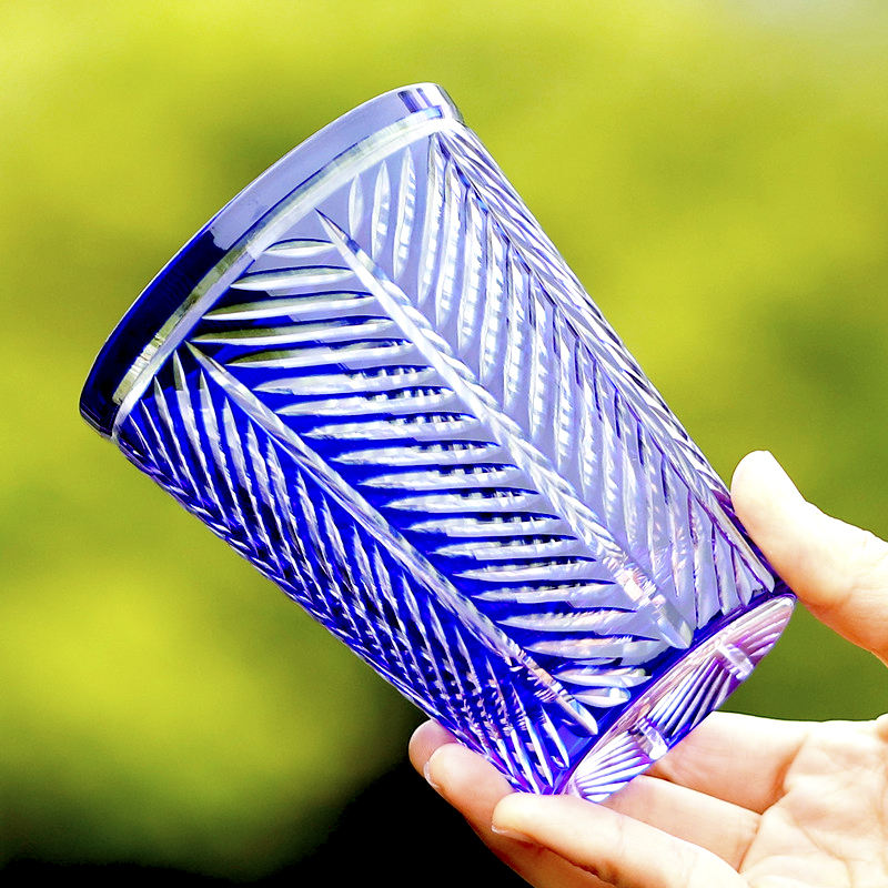 Mouth blown, hand-engraved glass tumbler