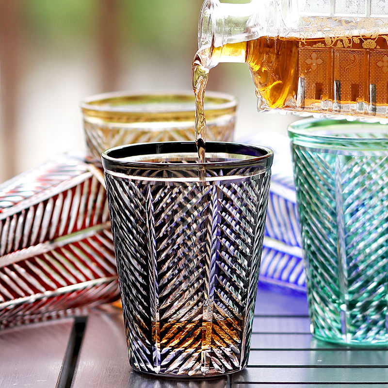Kiriko แก้วใส่แก้วซ้อนสีวิสกี้ Bourbon วอดก้าแก้วช็อต260มล. ชุดเครื่องดื่มวินเทจสำหรับงานปาร์ตี้ดื่มงานแต่งงาน