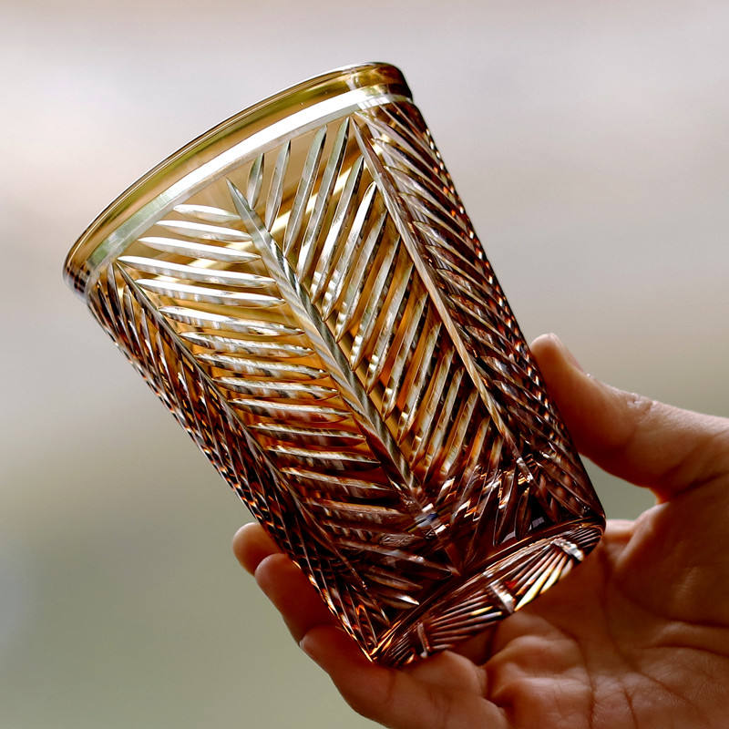 Hand carved amber coloured whisky tumblers