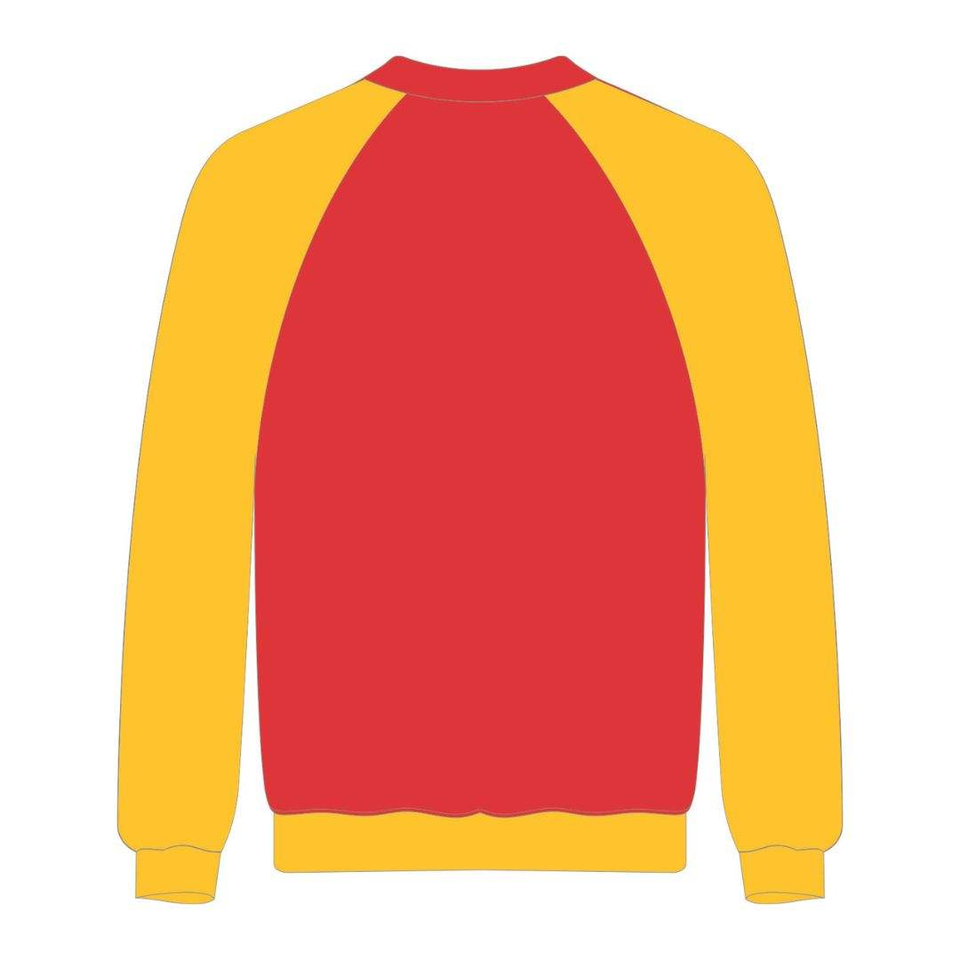 เสื้อสเวตเชิ้ตแขนแร็กแลนสีแดงสด ปักลายเชนิลล์ด้านหน้า สำหรับฤดูหนาว ลายกรีก สำหรับชมรมนักศึกษา Divine Nine ออกแบบตามสั่ง
