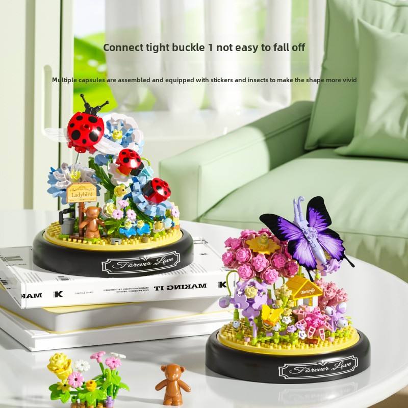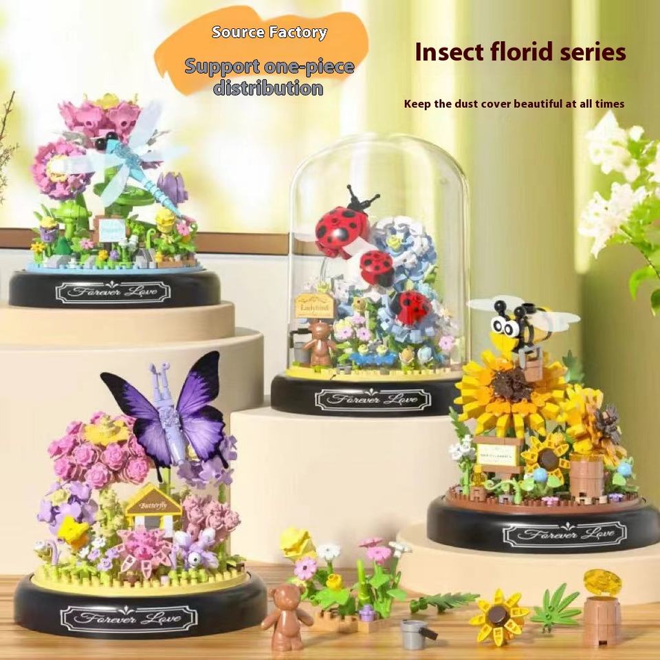 ของเล่นประกอบ3D เพื่อการศึกษาสำหรับเด็กเครื่องประดับดอกทานตะวันอมตะบล็อกที่เข้ากันได้กับแมลงจำลองอนุภาคขนาดเล็ก