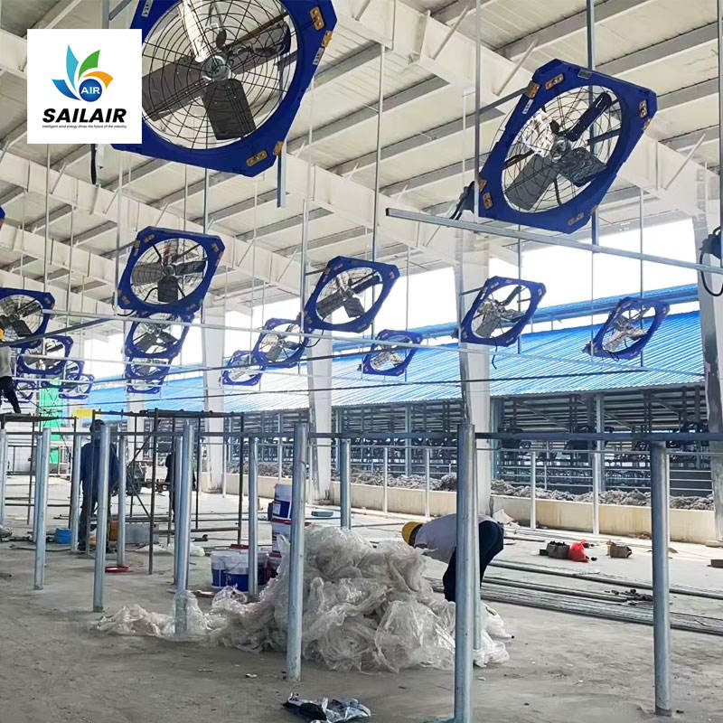พัดลมระบายอากาศแบบแขวนเพดานสำหรับโรงเรือนปศุสัตว์ ประหยัดพลังงาน ราคาคุ้มค่า ผลิตจากเหล็ก ใช้พัดลมแบบแกนหมุน