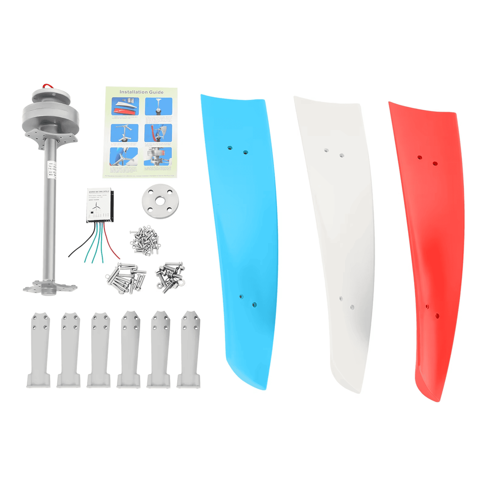 เครื่องกำเนิดไฟฟ้ากังหันลมแนวตั้งใบพัด3ใบพัด500วัตต์เส้นผ่านศูนย์กลาง1.2เมตรตัวควบคุม12โวลต์/24โวลต์ IP67ลูกปืนคู่ ce/ccc
