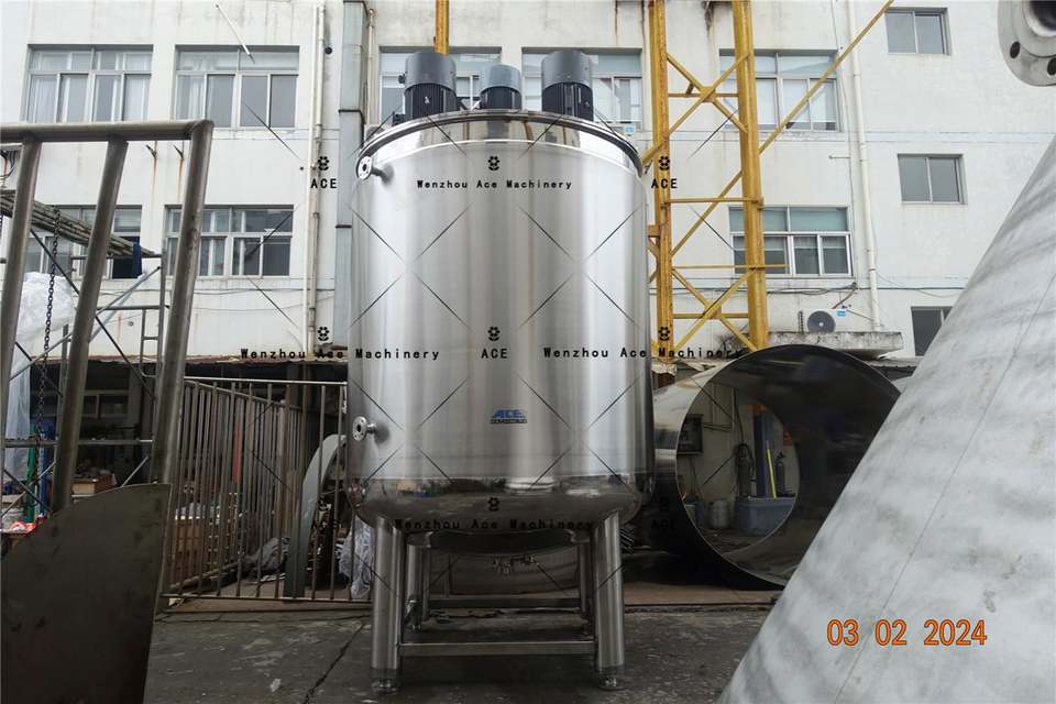 ถังผสมของเหลวและพาสเจอร์ไรซ์พร้อมส่วนประกอบหลักของตลับลูกปืนมอเตอร์ทำจากสเตนเลสสตีลมีประสิทธิภาพ