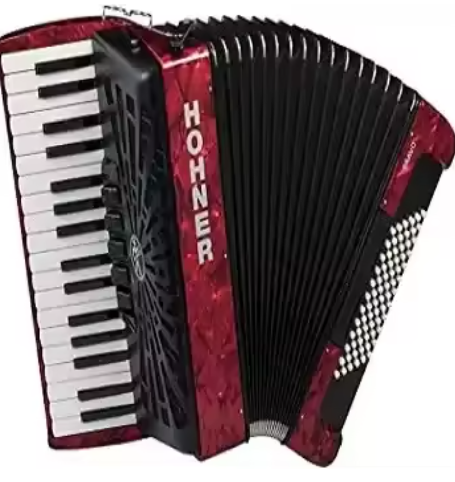 HOHNER Bravo III 72หีบเพลงที่มีเครื่องสูบลมสีดำสีแดง