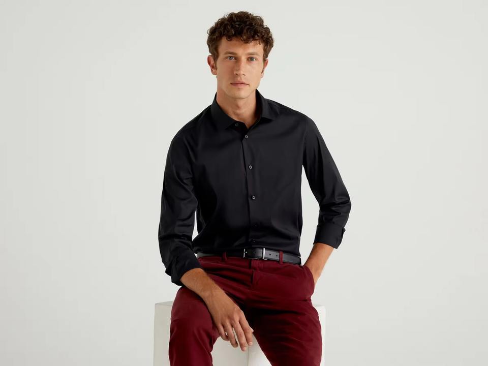 Effortlessly Stylish Classic Black Button Down Shirt Paired With Burgundy Statement Pants For Confident Besties