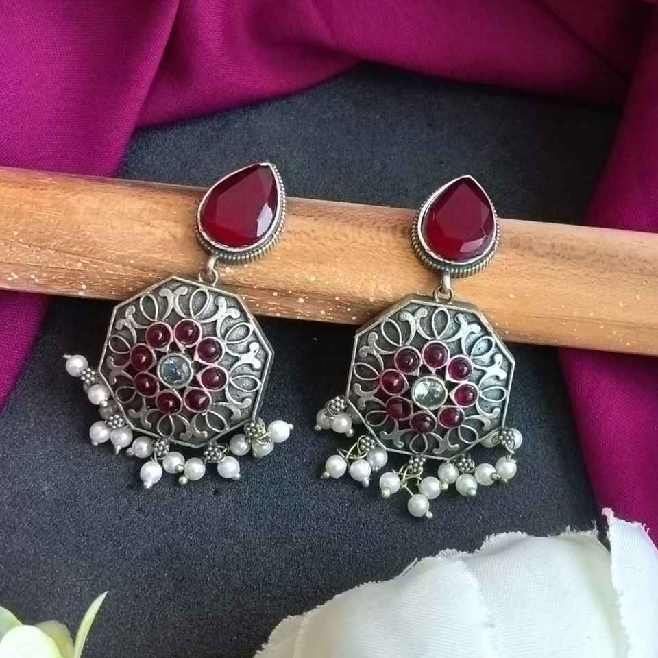Design:Antique Oxidized Silver Tone Earring Set