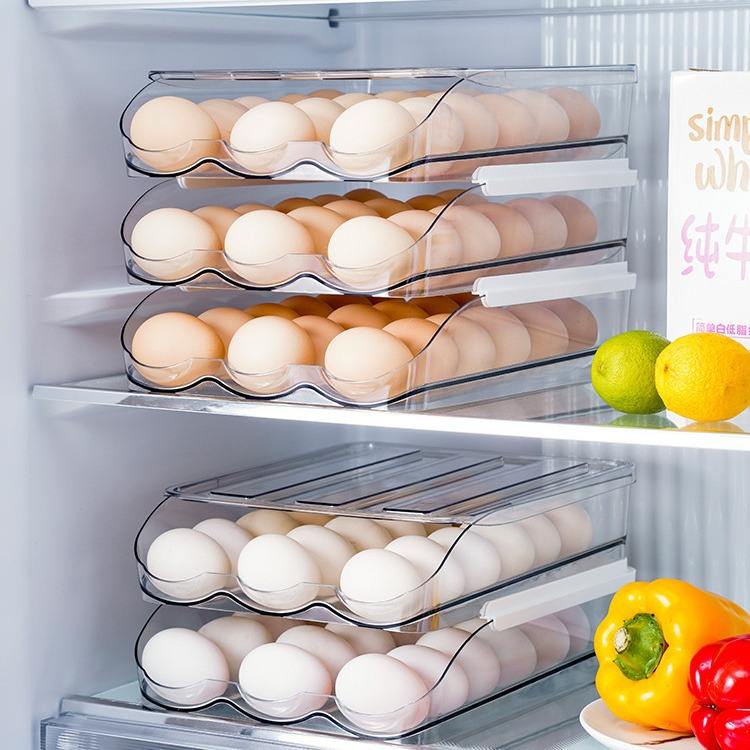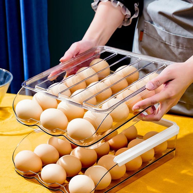 Egg Holder for Fridge Automatically Rolling Egg Storage Container for Refrigerator Large Capacity Egg Organizer for Fridge
