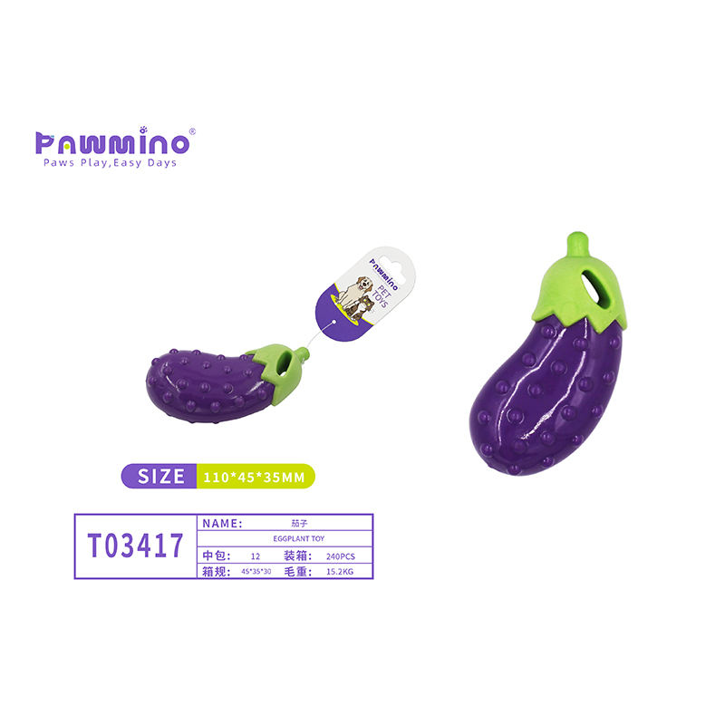 ของเล่นเคี้ยวรูปทรงมะเขือม่วงสำหรับสุนัข วัสดุ TPR มีเสียงดังสำหรับช่วยในการงอกฟัน ขนาดกลาง ใช้ในร่ม ดีไซน์น่ารัก