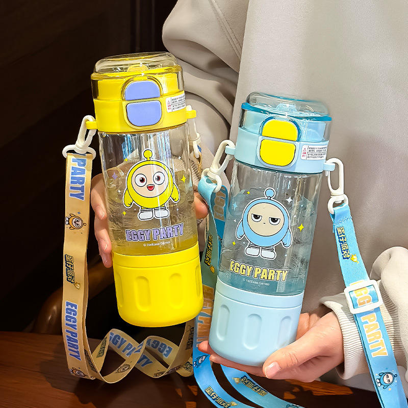 ขวดน้ำการ์ตูน Eggy Party 500 มล. พร้อมสายสะพายสำหรับเด็กนักเรียนใช้ในโรงเรียน