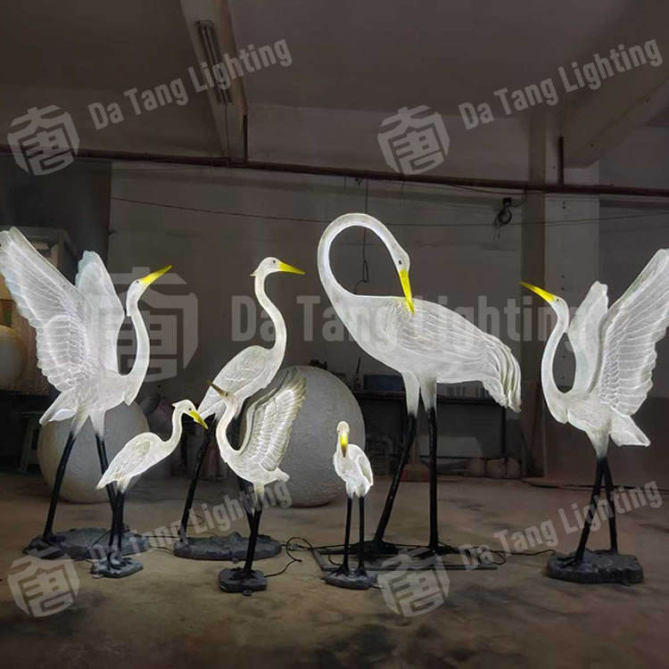 โคมไฟตกแต่งรูปนกกระยาง LED กันน้ำ IP65 สำหรับสวนสาธารณะ สนามหญ้า และไฟประดับวันหยุด
