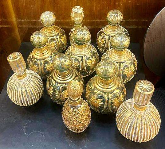 ขวดน้ำหอมแก้วทำมือสไตล์อียิปต์โบราณ ตกแต่งคริสตัลสีบรอนซ์ ด้วยเทคนิคการหล่อขึ้นรูป รูปทรงขวดเหล้า ขนาด 20-200 มล.