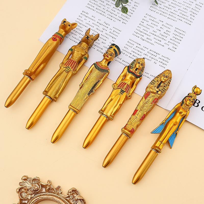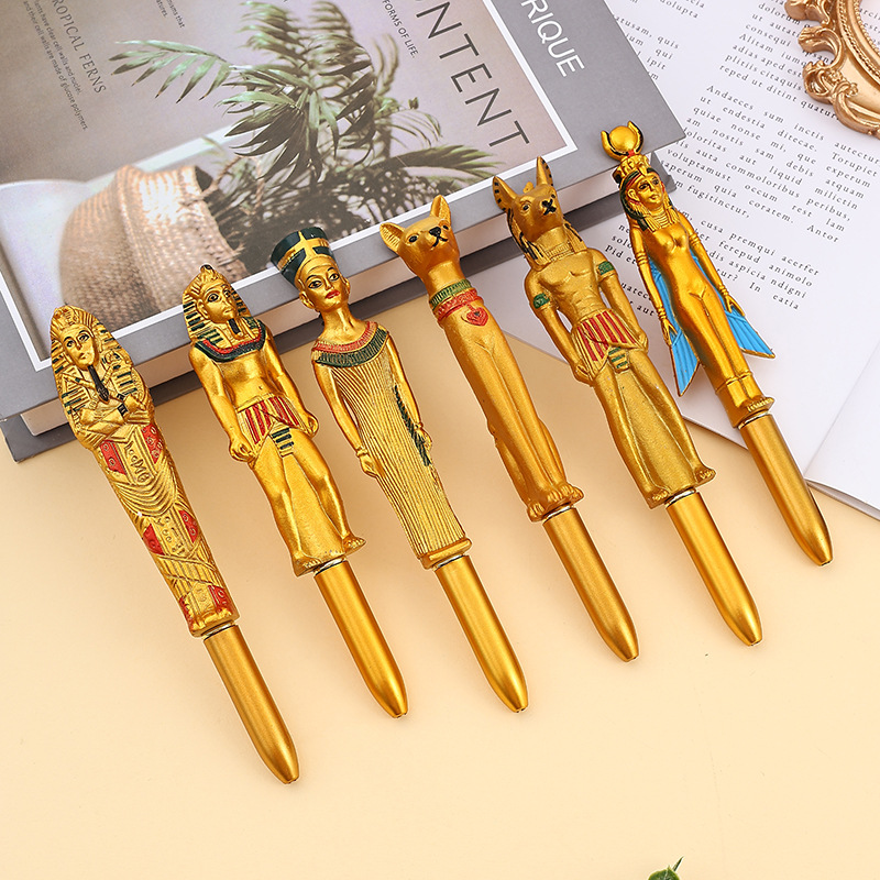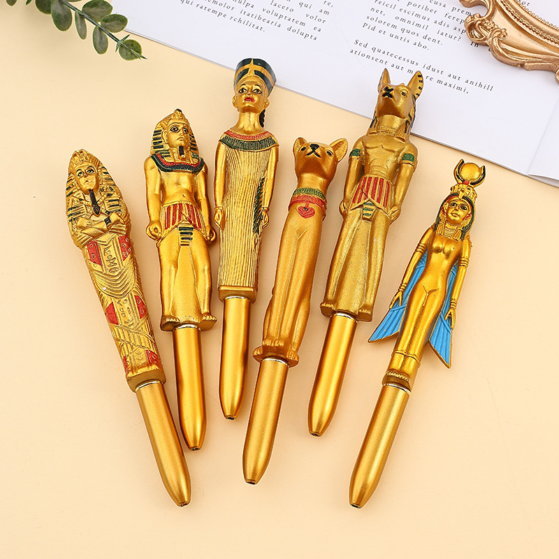 ปากกาลูกลื่นพลาสติกอเนกประสงค์ ของที่ระลึกจากอียิปต์ หมึกสีน้ำเงิน หัวปากกา 0.7 มม. รูปปั้นฟาโรห์ เหมาะสำหรับงานธุรกิจและการเดินทาง