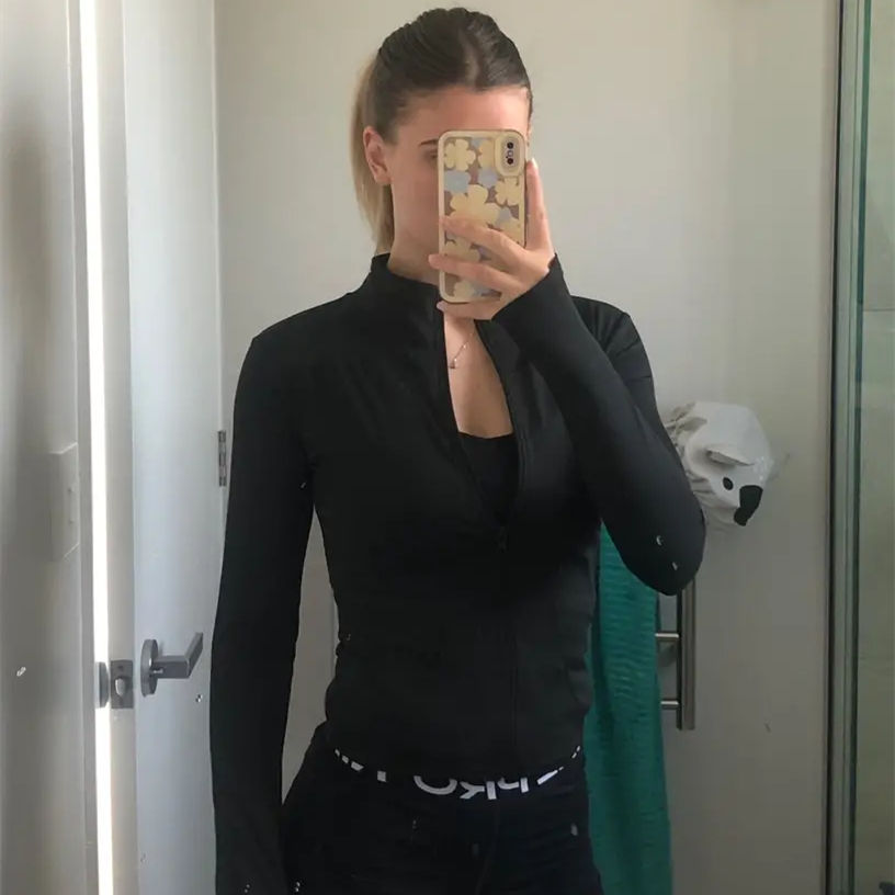 เสื้อแจ็กเก็ตใส่วิ่งเล่นโยคะสำหรับผู้หญิงเสื้อโค้ทแขนยาวผ้ายืดหยุ่นสูง