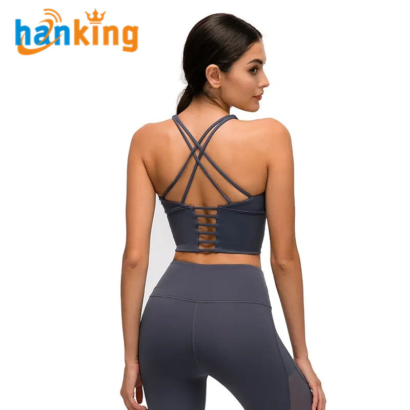 Ehanking Yoga Bra High Quality Women's Solid Cross Back Sport Fitness Running Yoga Bra Cropped Tank Tops