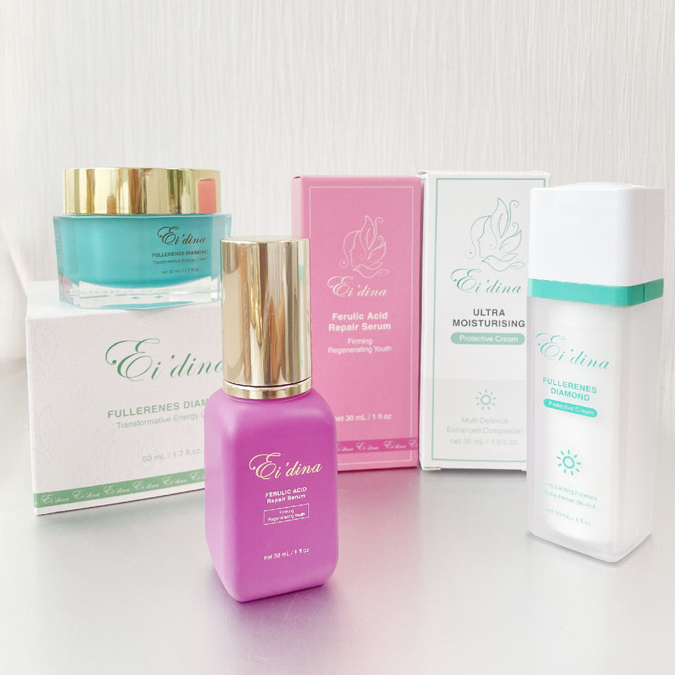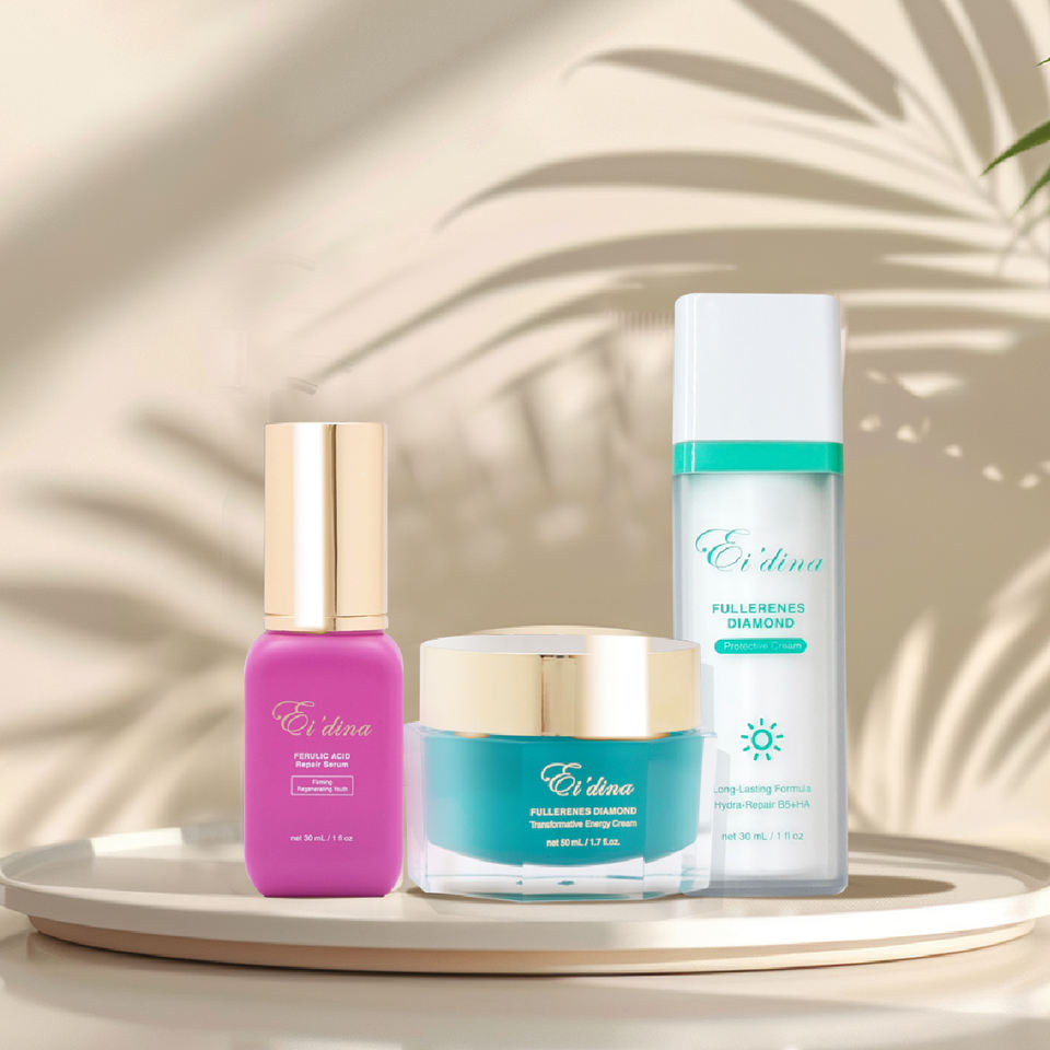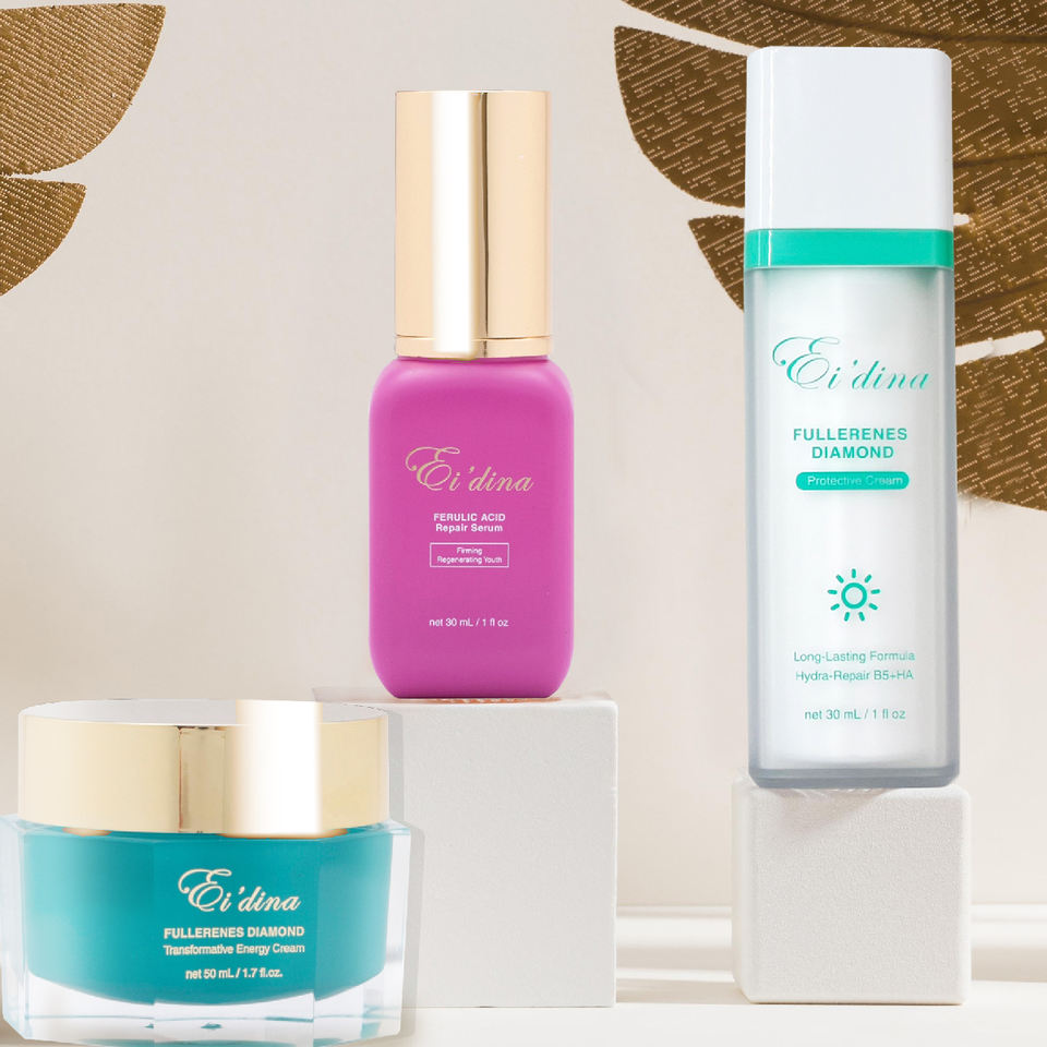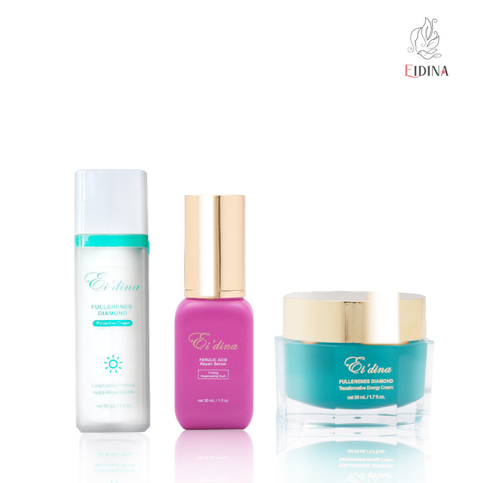 เซรั่มกรดไดมอนด์เรเดียนเฟอรูลิคแอซิด, ไพรเมอร์เติมความชุ่มชื้นให้เพชรฟูลเลอรีน, ครีมกระตุ้นเพชรฟูลเลอรีนส่วนผสมหลัก