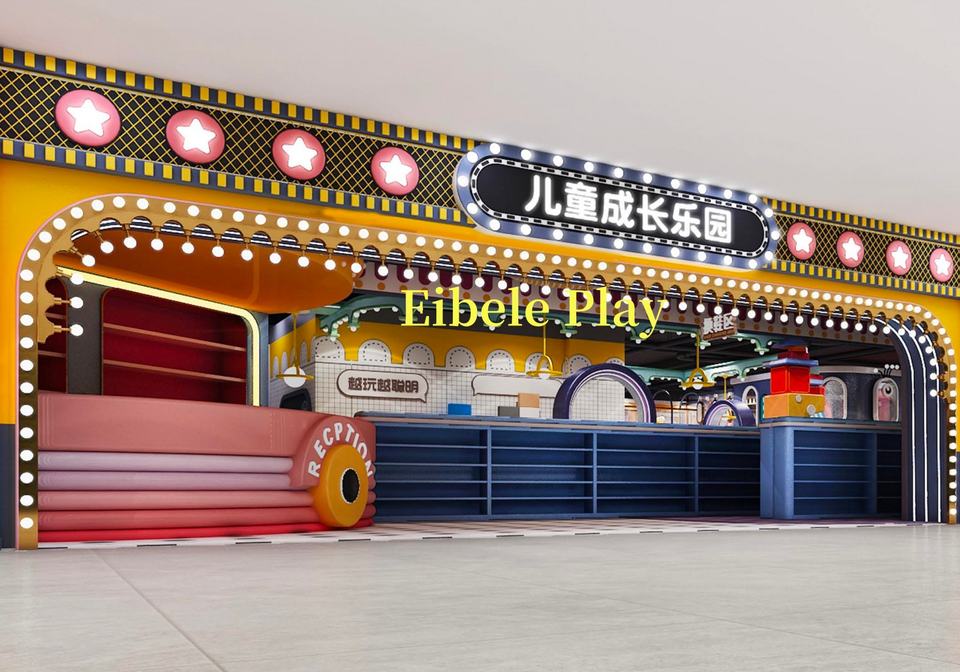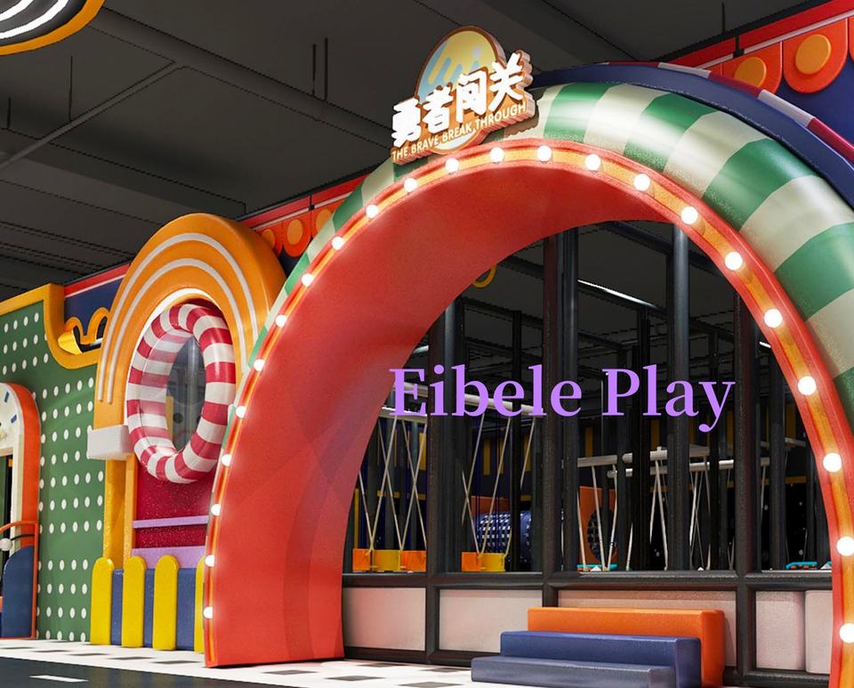 อุปกรณ์ตกแต่งทางเข้าสนามเด็กเล่นในร่มแบบนุ่มสำหรับเด็ก ทำจากวัสดุไฟเบอร์กลาสยี่ห้อ Eibele เหมาะสำหรับพื้นที่เล่นในร่มในห้างสรรพสินค้า