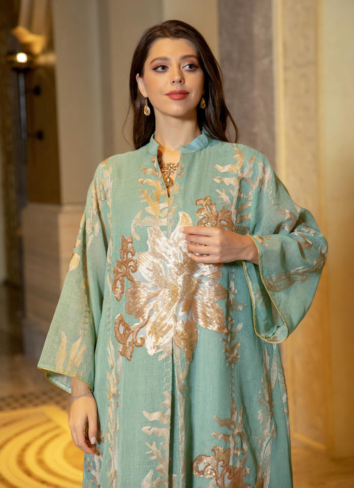 ชุดเลเฮนกาโชลีปักลายดอกไม้หรูหราประดับเลื่อมสีทองสำหรับงานอีด อัลฟิตร์ รอมฎอน งานเลี้ยง ดูไบ