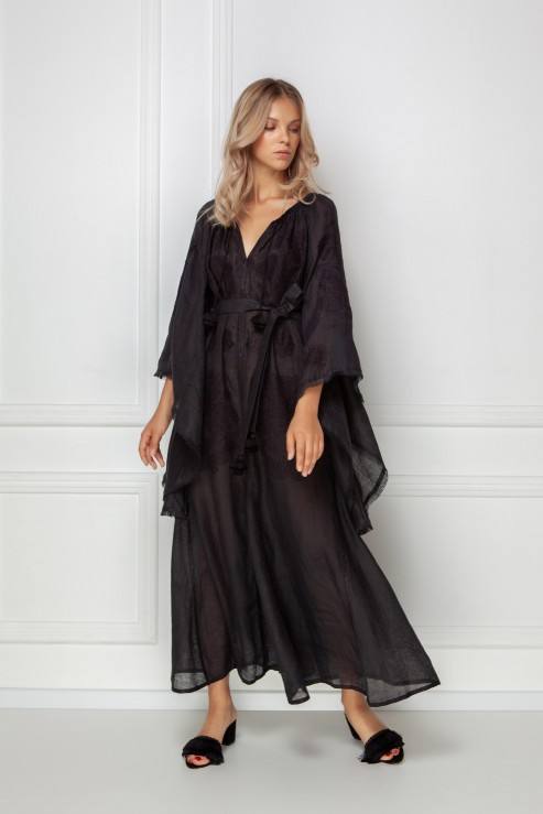 Eid ชุดเดรสผ้าลินินปักลาย,ชุดเดรสสไตล์ Ukranianin สำหรับสวมใส่สบายในวันหยุดฤดูร้อน