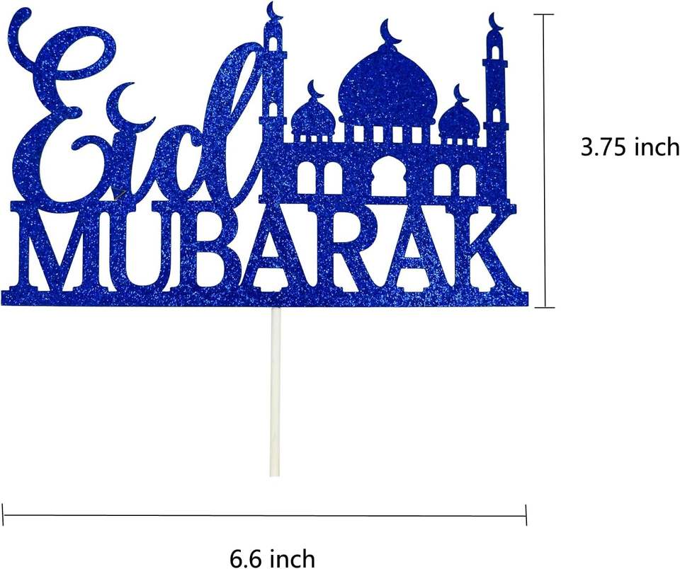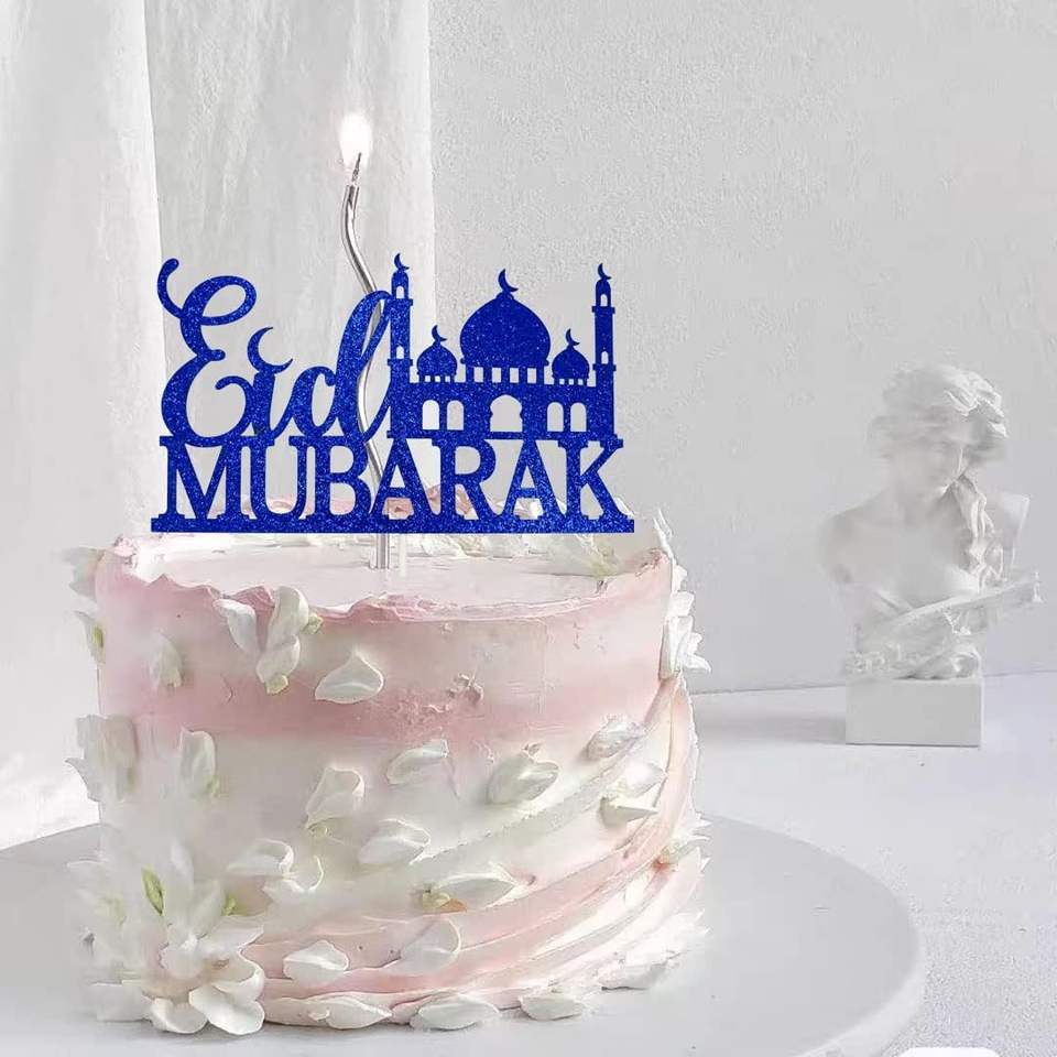 ของตกแต่งเค้กอีดมูบาร็อค สุขสันต์วันอีด ชาวมุสลิม อิสลาม กลิตเตอร์สีน้ำเงิน รอมฎอน คารีม ฮัจญ์ มูบาร็อค อีด ของตกแต่งงานเทศกาล อีด
