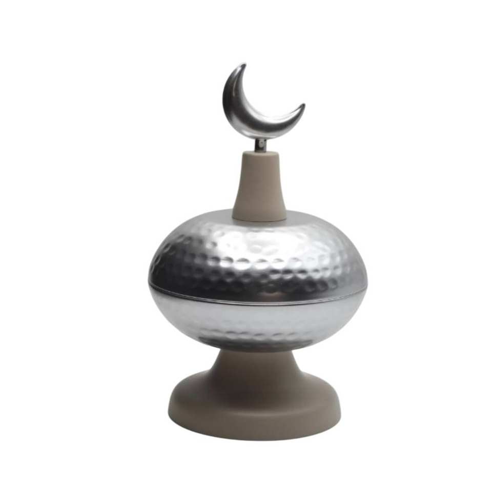 ขาตั้งโต๊ะรูปพระจันทร์เสี้ยว 2 ชั้น ทำจากพลาสติก ลายตอกสีเงินและสีเบจ กันน้ำ ทนทาน สำหรับตกแต่งบ้านสไตล์อิสลาม ฉลองวันอีดมูบารัค