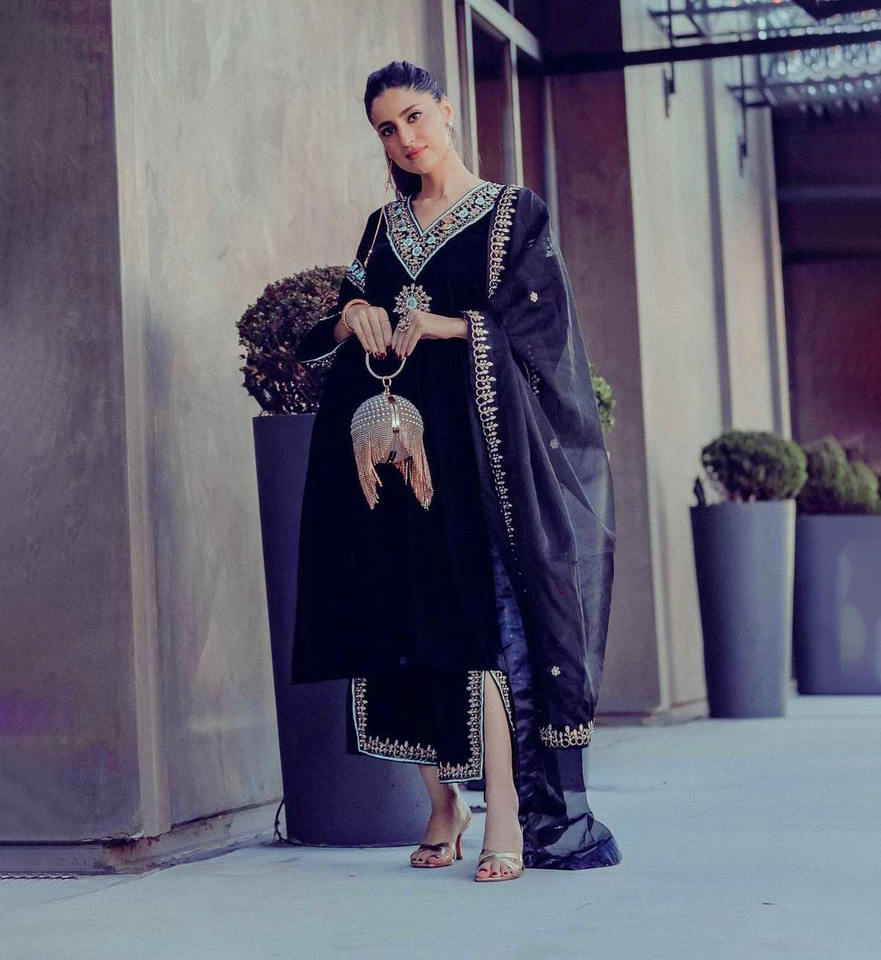 ชุดสلوار คามีซพิเศษสำหรับเทศกาลอีดและรอมฎอน, ชุดแต่งงานปากีสถานสำเร็จรูปและปรับแต่งได้, ชุดคุर्ติ-ปาลาซโซผ้ากำมะหยี่แฟนซีพร้อมผ้าคลุมไหล่, ขายส่ง