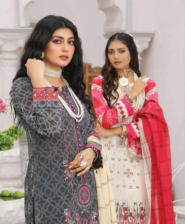Eid Shalwar Kameez สนามหญ้าและผ้าฝ้ายคอลเลกชันที่สวยงามสำหรับ2025ฤดูร้อนพร้อมการตกแต่งด้วยการเย็บในรูปแบบที่แตกต่างกัน