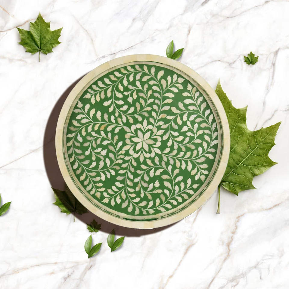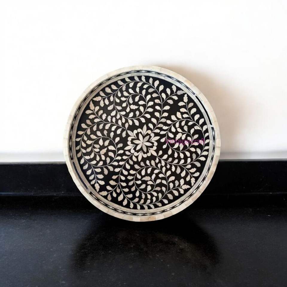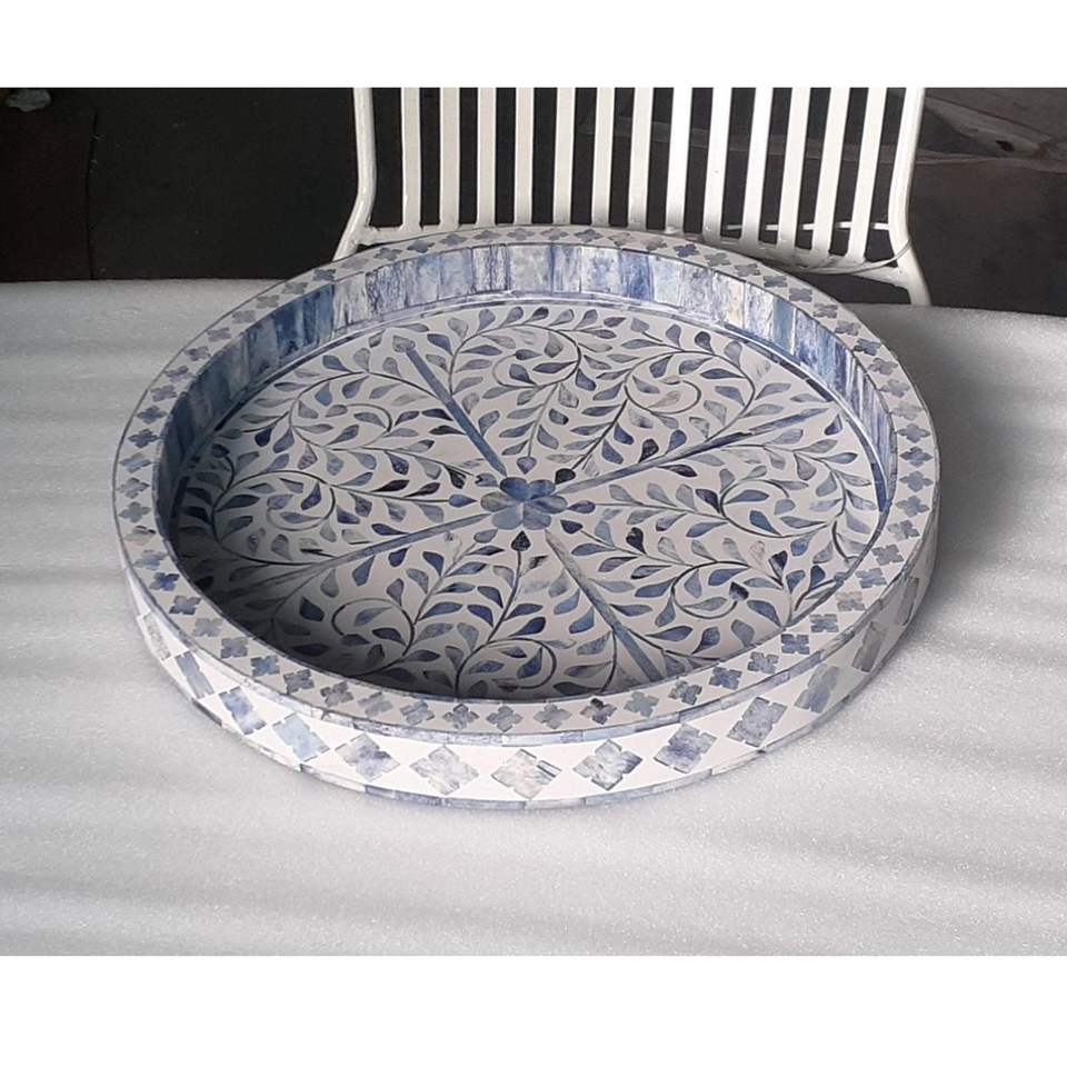 Eid Special Serving Tray with Bone Inlay Color Enamel Technique for Furniture Factory Price Made In India