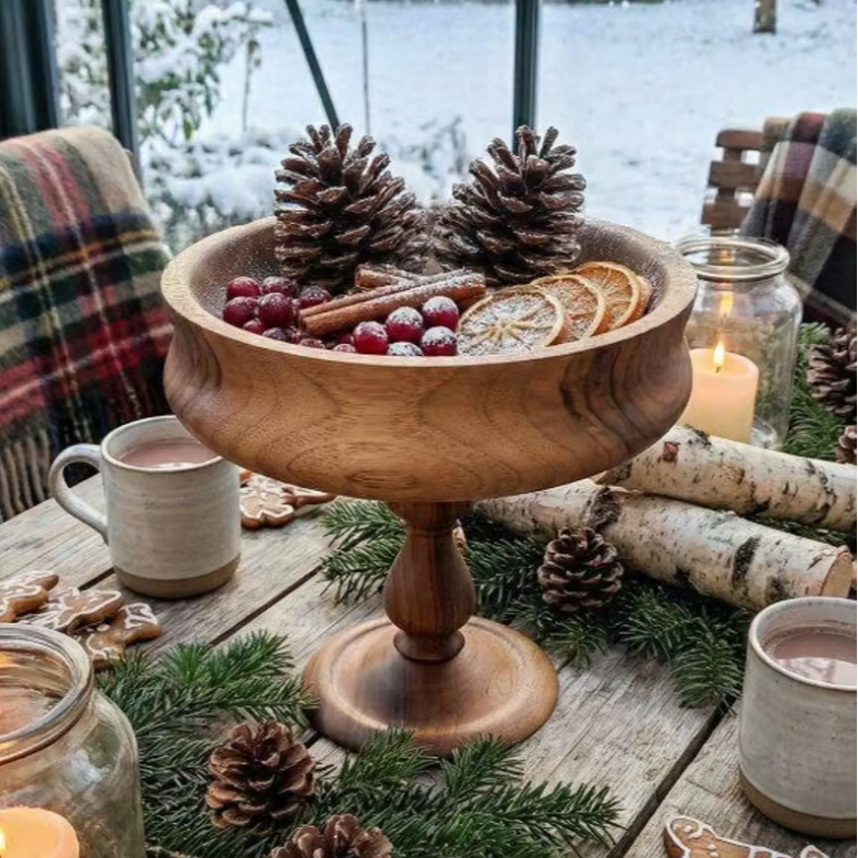 ชามไม้ประดับพร้อมขาตั้ง