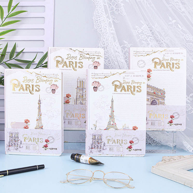 สมุดโน้ต A5รูปหอไอเฟลสไตล์ย้อนยุคหรูหราพิมพ์ลายสีสันสดใสปกกระดาษลายนูนสีทองปกแข็งและสมุดบันทึก