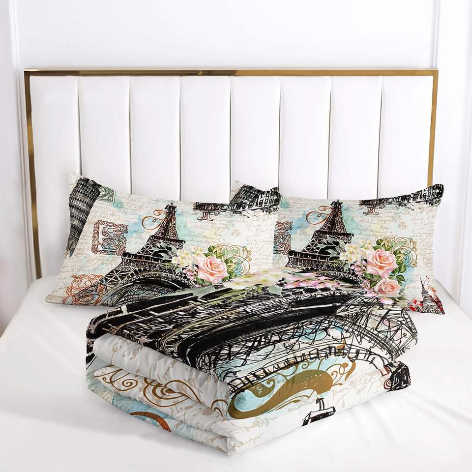 ชุดเครื่องนอน 3 ชิ้น ลายดอกไม้สไตล์เรโทร ลายหอไอเฟล สำหรับทุกฤดู ขนาดคิงไซส์ สำหรับผู้ใหญ่ เนื้อผ้านุ่ม ใช้ในบ้าน งานแต่งงาน ผลิตในจีน