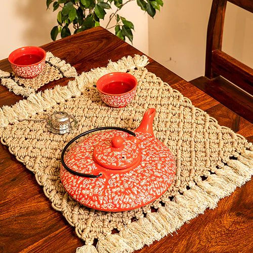 แผ่นรองจานผ้าฝ้ายถักมือประดับอัญมณีสำหรับตกแต่งบ้านและสำนักงานแปดนอตที่รอง100% ทำด้วยมือ macrame Boho